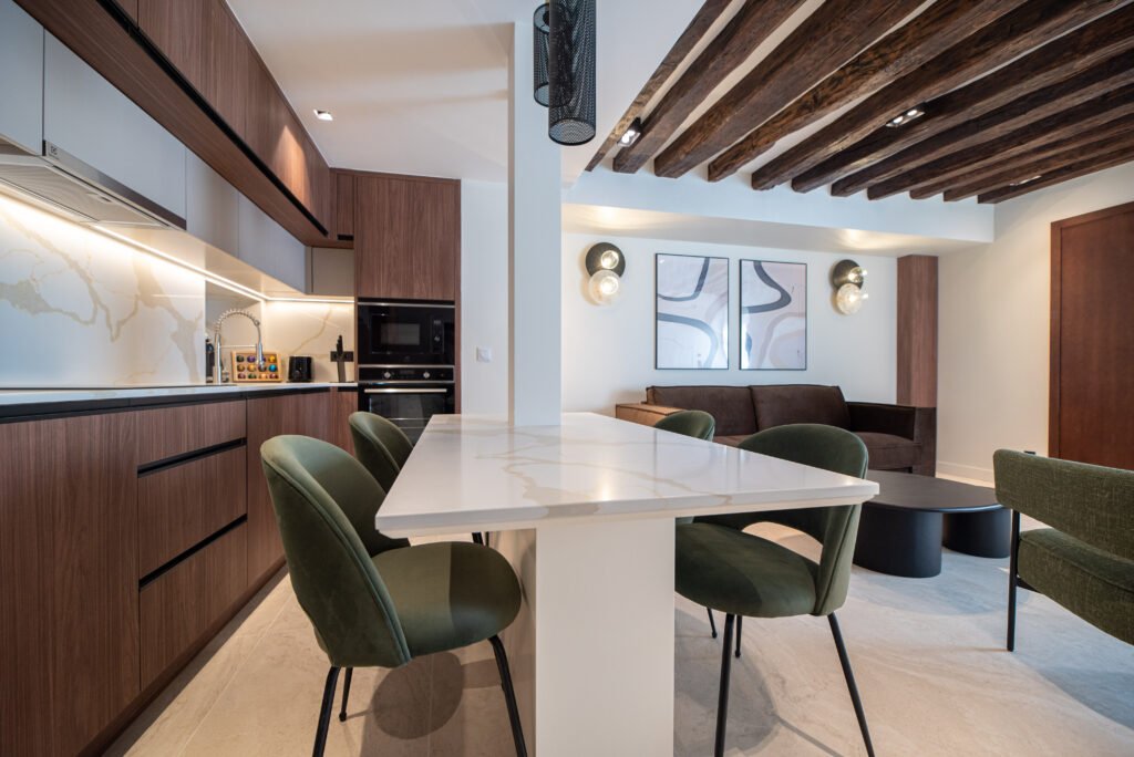No coração do emblemático Marais parisiense, o projeto Place des Vosges 2, executado pela Capra em colaboração com o Studio M15, assina a totalidade do mobiliário sob medida de dois apartamentos exclusivos.