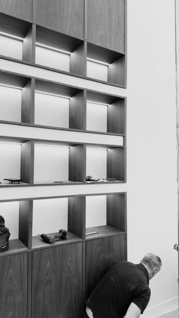 A Capra assina o mobiliário desenhado à medida para os diferentes espaços, numa abordagem que privilegia a qualidade dos materiais e a precisão do detalhe. A folha de nogueira americana e os espelhos bronze contribuem para uma leitura sofisticada e equilibrada dos ambientes, enquanto a seleção cuidada de tecidos assegura continuidade e conforto visual.